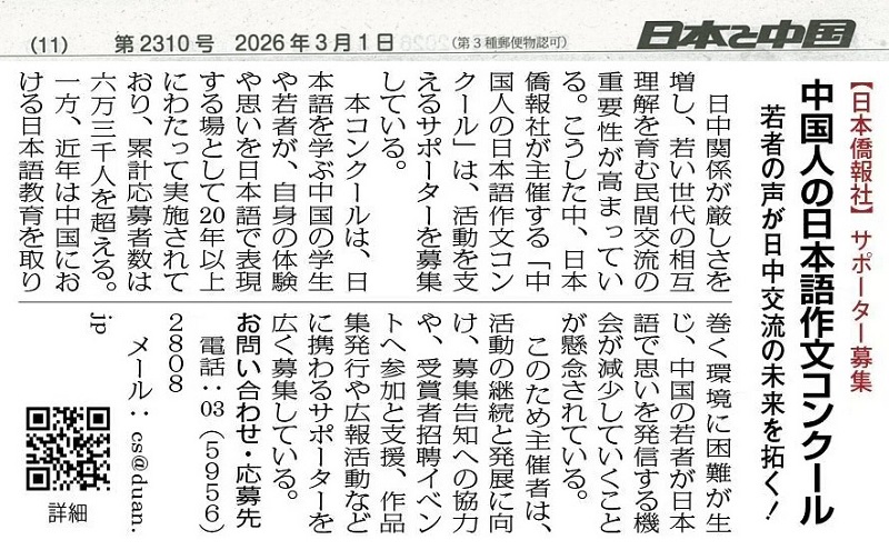 | 日中友好新聞にシリーズで報道 |